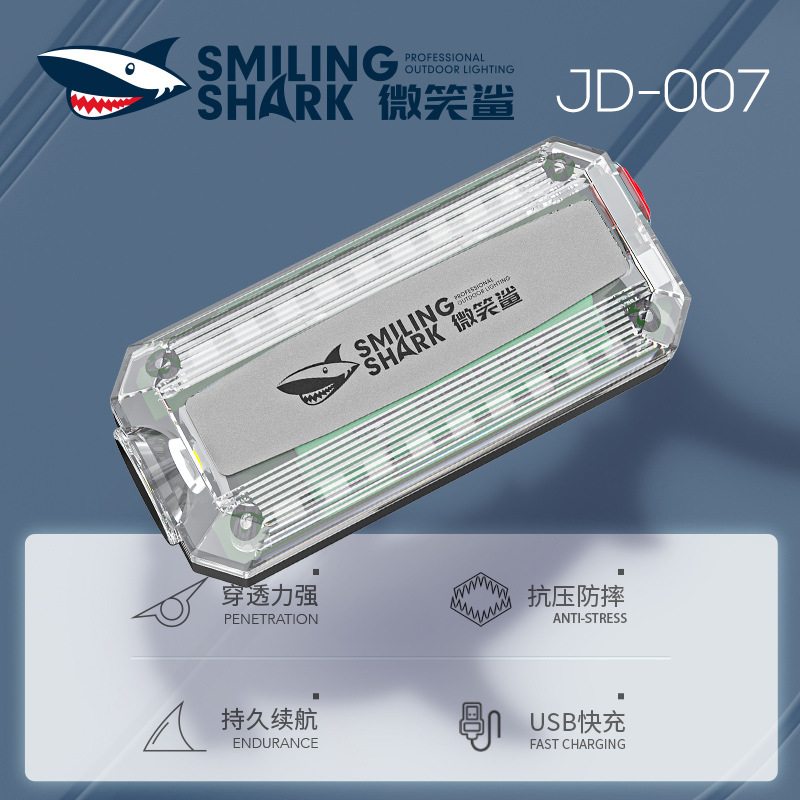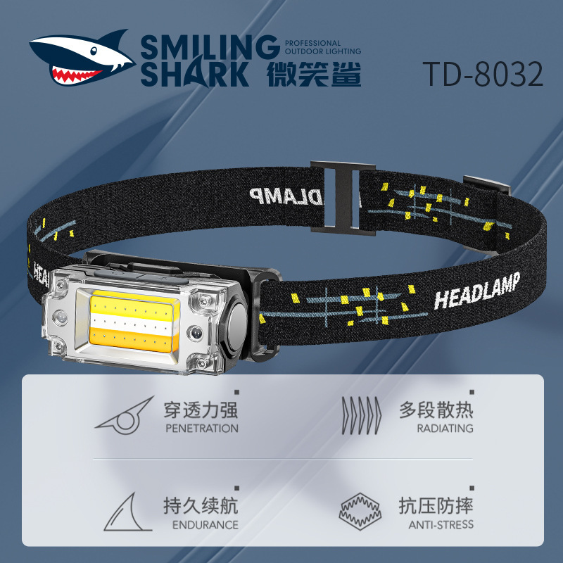 微笑みサメ屋外感応ヘッドライト防水探検多機能ヘッドライト騎行灯磁石付き強光ヘッドライト