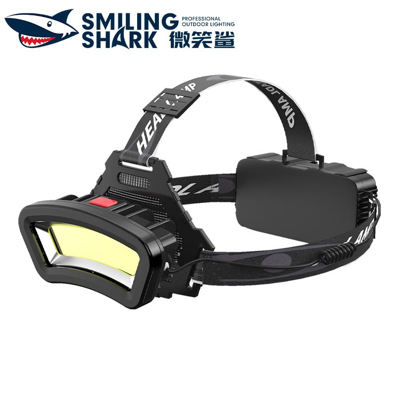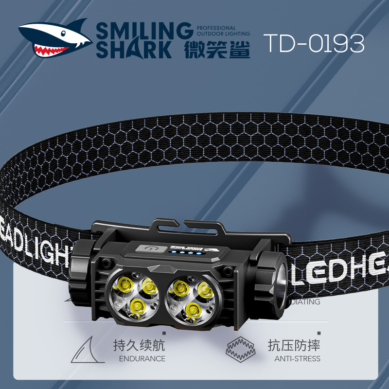 微笑むサメのミニ二重ランプの大きい投光の頭は明かりの屋外の夜の釣りの明かりのLEDの電気は3段の調節のヘッドライトを表示します。