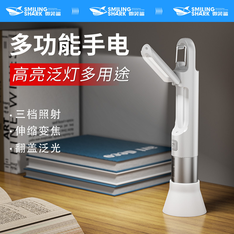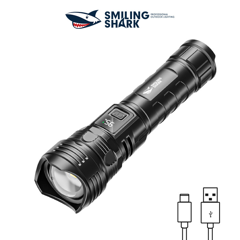 にこにこサメ屋外携帯懐中電灯三段調節タバコ機能携帯ライト付き電気ディスプレイ充電式懐中電灯