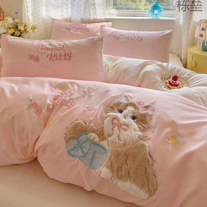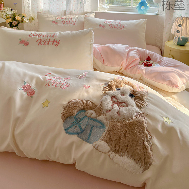 クラスAニット母子グレード二層糸4点セット肌に優しく柔らかく爽やかな掛け布団カバーシーツ学生寮3点セット