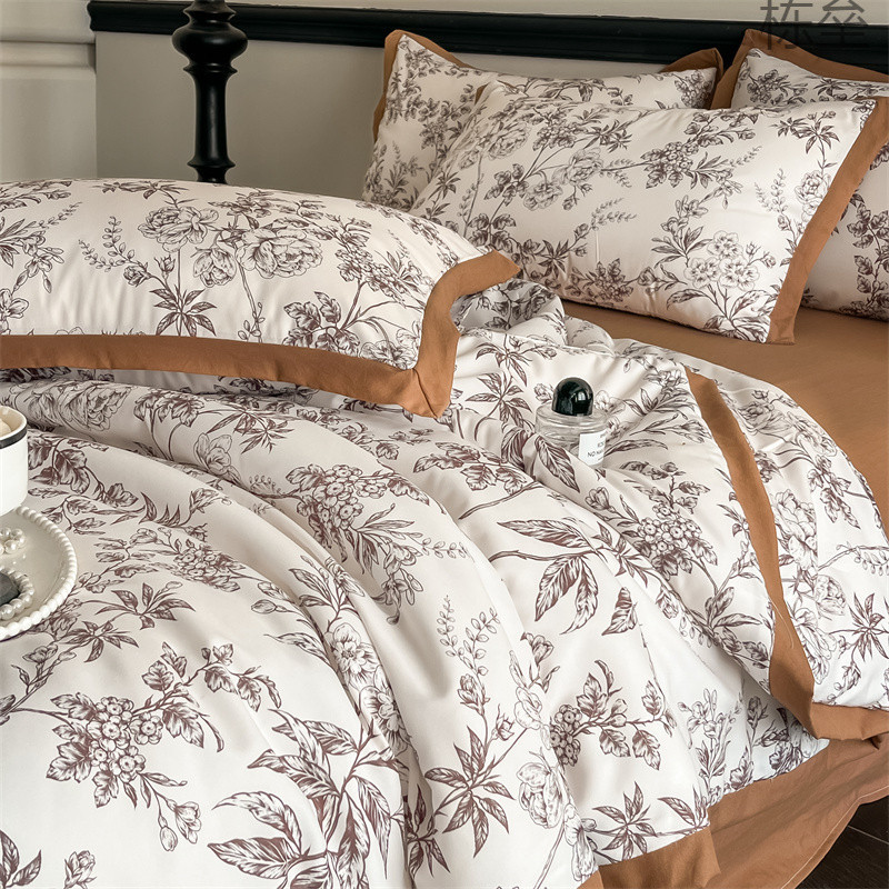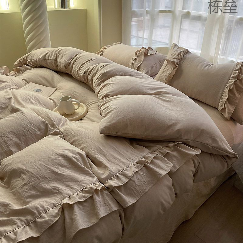 蓮の葉レースミルクコーヒー色掛け布団カバー寝具無地ダブルベッドシーツ4点セット寮掛け布団シングル3点セット