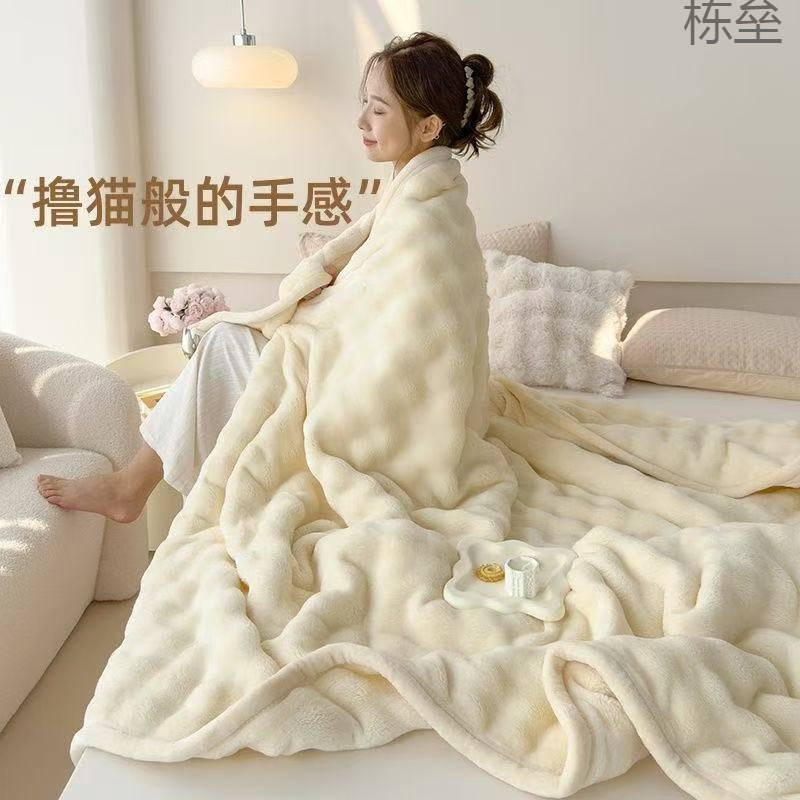 【クラスA生地】高級なウサギの毛布布団冬の厚い毛布シーツサンゴのベルベットオフィスの午後