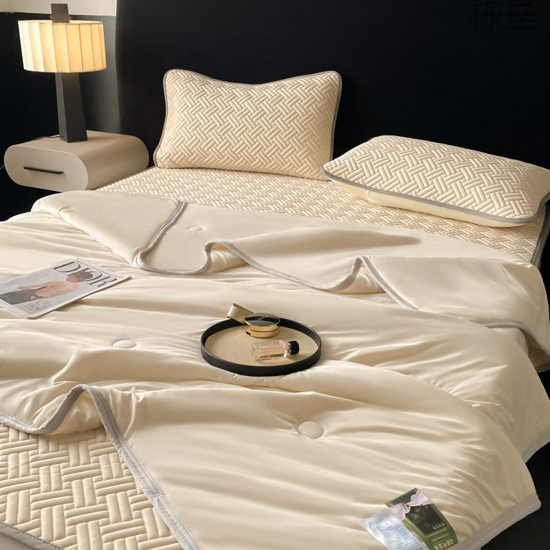 【中綿入り】ベッド用サマーアイスシルクマット サマーキルト 4点セット ベッドスカート 洗えるソフトマット3枚