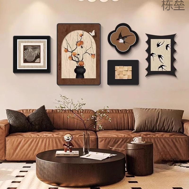 フレンチミッドセンチュリーリビングルーム装飾絵画柿柿如意レトロ組み合わせ壁画ハイエンドソファ背景壁掛け絵画