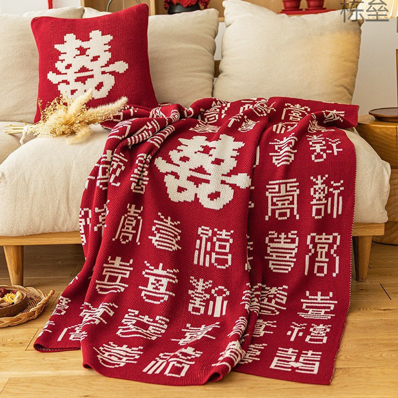 【店舗がよく売れている】中国風高級結婚百喜蓋絨毯酒紅軽豪華結婚室装飾寝室ベッドテール