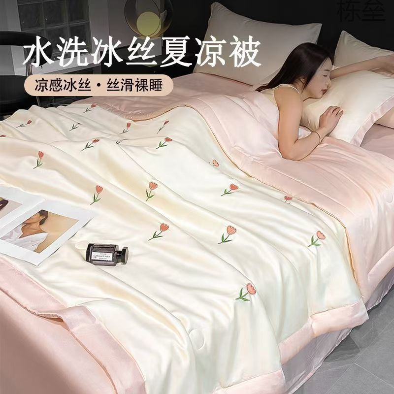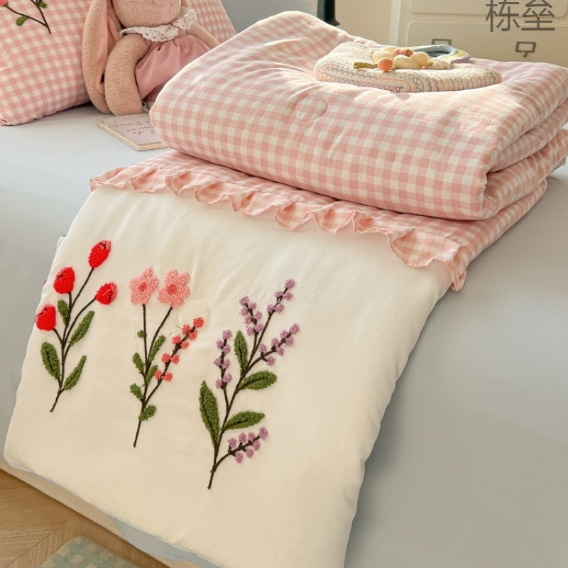 【店舗人気】夏ins高颜値夏凉被タオル刺繍軽薄エアコン4点セット薄金可