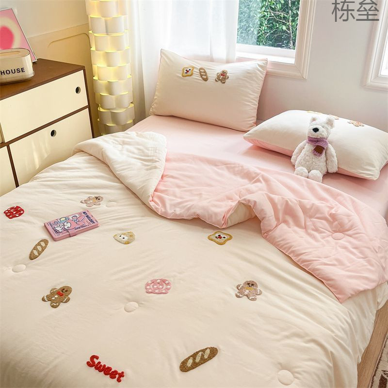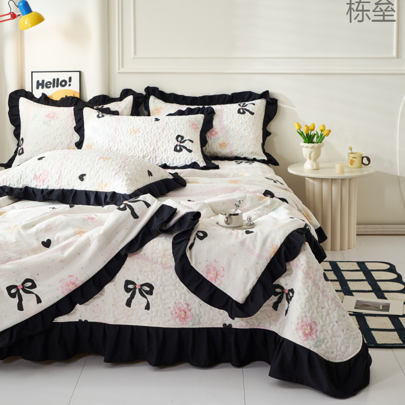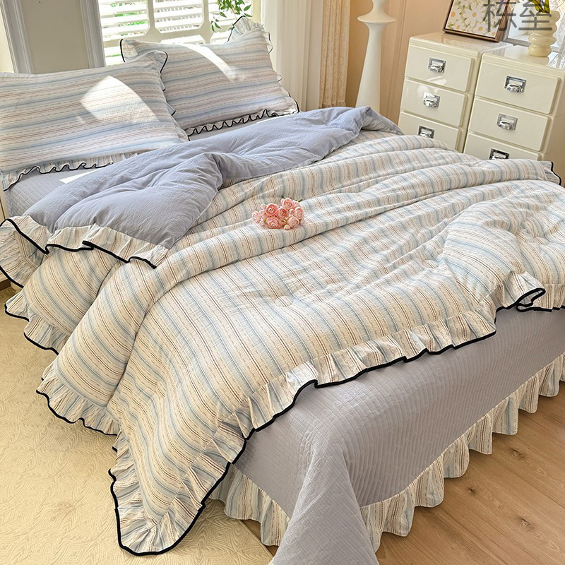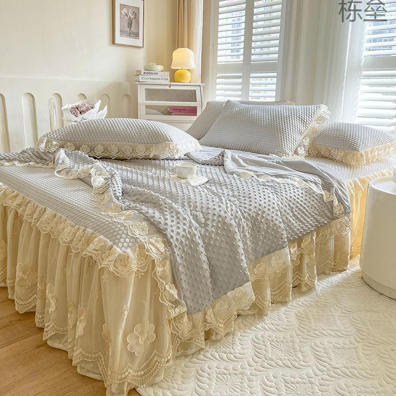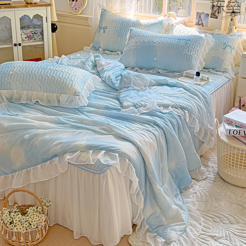 【優しい肌感】ins風夏韓国版夏布団4点セット綿入りベッドカバー二人夏涼しレース