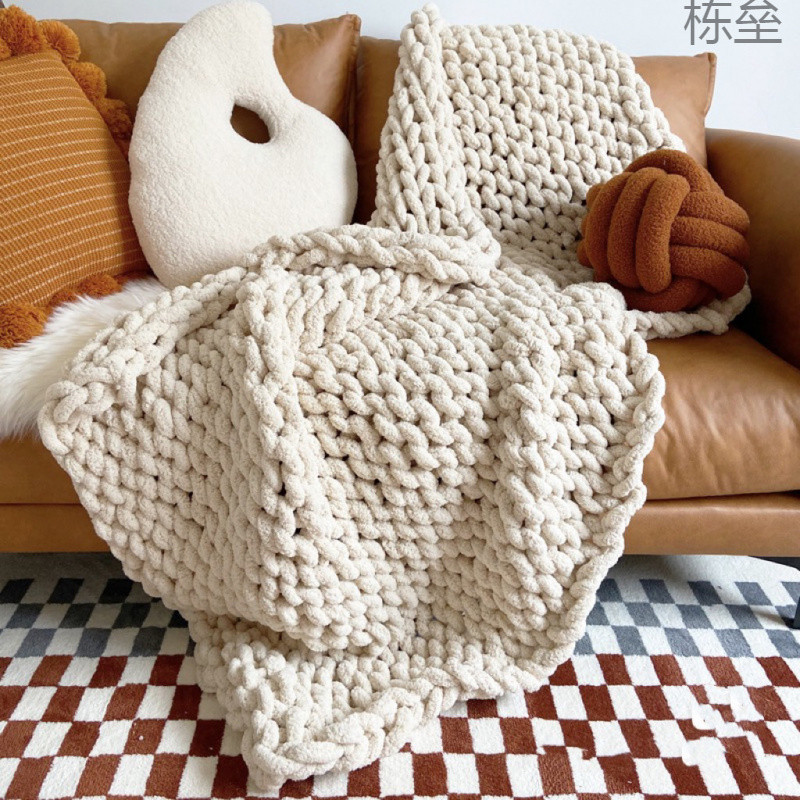 【1074人コレクション】ins風シェニール手織りブランケット完成品粗糸ブランケットネットレッド毛糸ニット