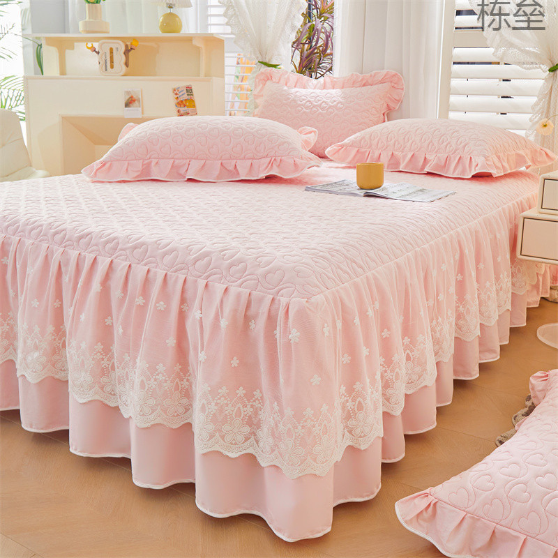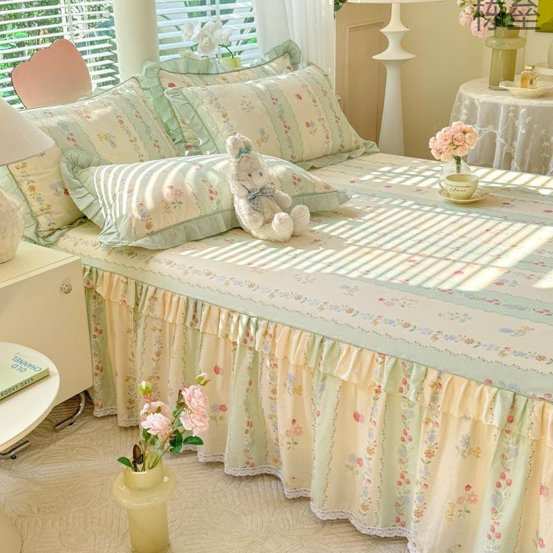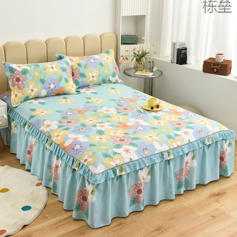プリンセススタイルの純綿ベッドカバーベッドスカートスタイル2024新しい綿ベッドシーツスカート付き家庭用四季ユニバーサル3点セット
