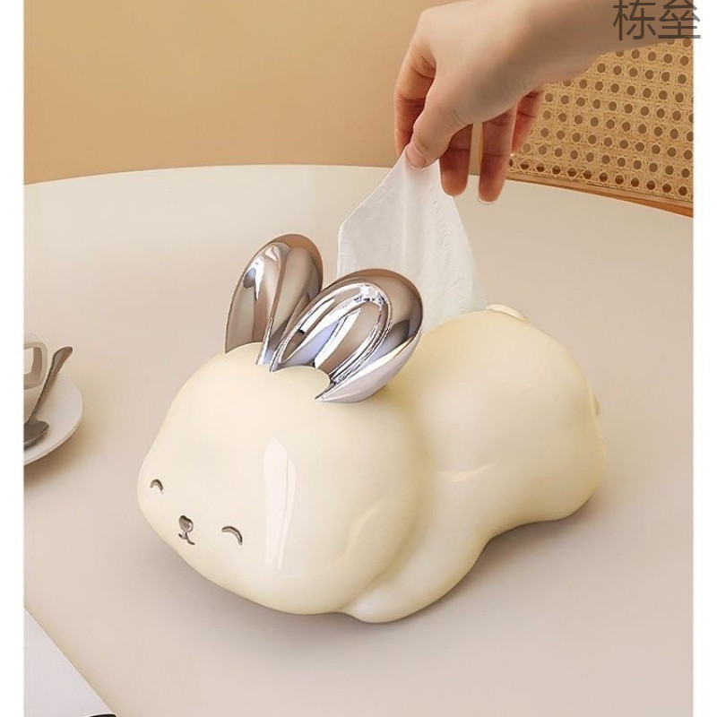 かわいいウサギのセラミックティッシュボックス北欧インリビングルームコーヒーテーブルティッシュボックス装飾品高価値紙ティッシュボックス