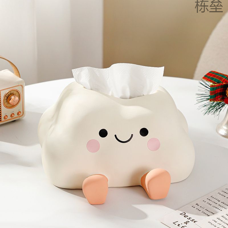 スマイリーフェイスクラウドクリエイティブセラミックティッシュボックスリビングルーム高価値携帯電話ホルダー2-in-1紙引き出し装飾品かわいい
