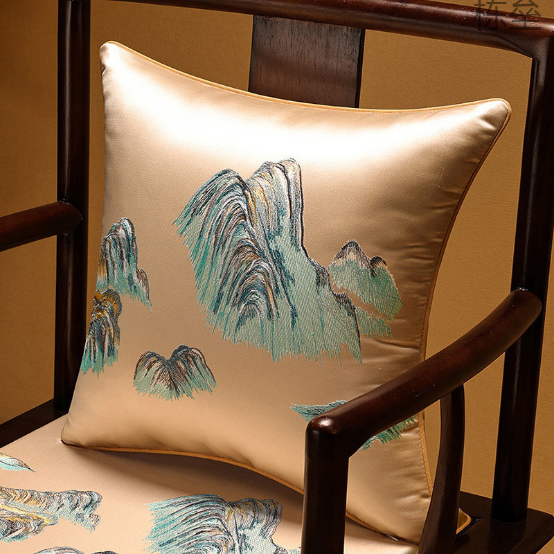 [Jiangshan] 新中国風枕、刺繍入り腰枕、リビングルーム用コアクッション、中国風腰枕、既製品の古典的な腰枕