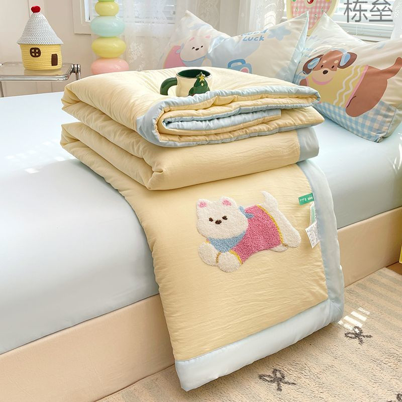 漫画タオル刺繍サマーキルトエアコンキルト夏クールキルト洗濯機で洗える学生寮キルトコア夏薄いキルト 4 点セット