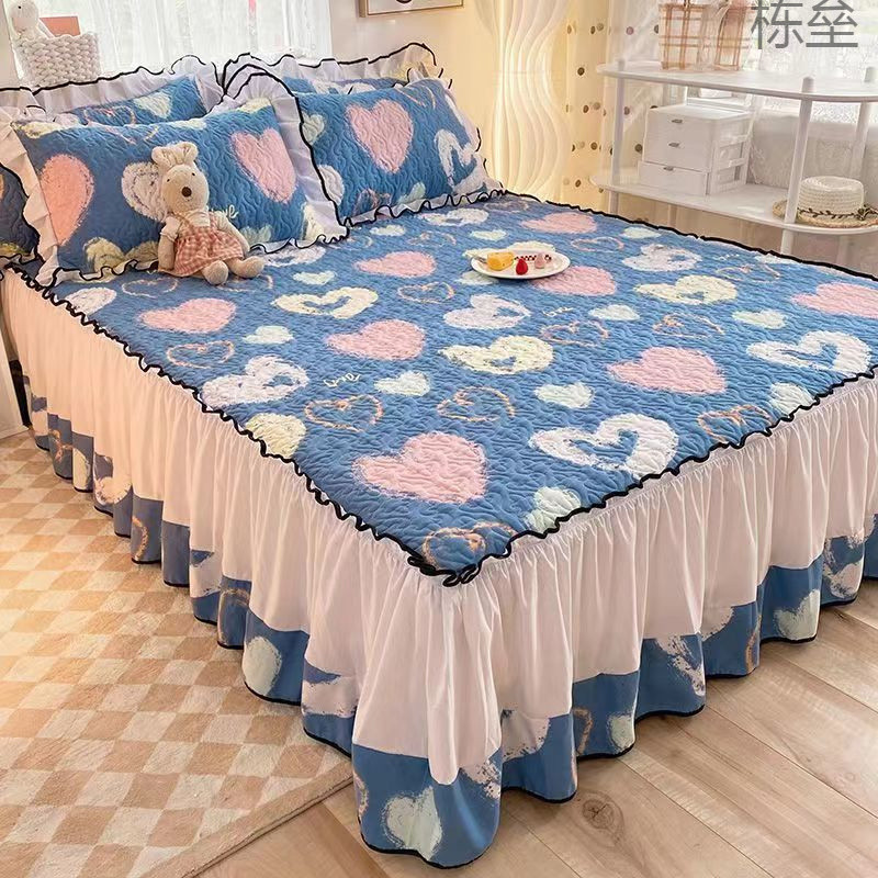 新しいプリンセススタイルの人気の厚みのあるキルティング滑り止めベッドスカートシングルピースベッドカバーユニバーサルベッドシーツ四季用シングル4点セット