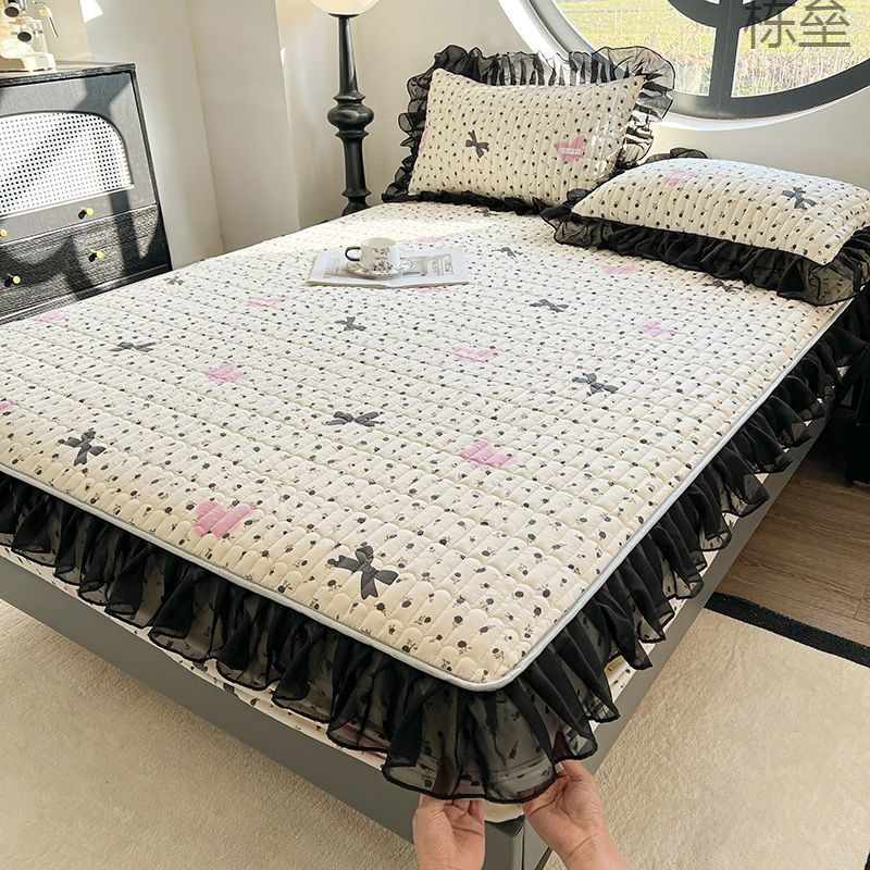 ヘプバーンの新しいレースのボックスシーツ、オールシーズン対応、厚みのあるキルティングの滑り止めボックスシーツ、シングルとダブルのハイエンドプリンセススタイルのダストカバー