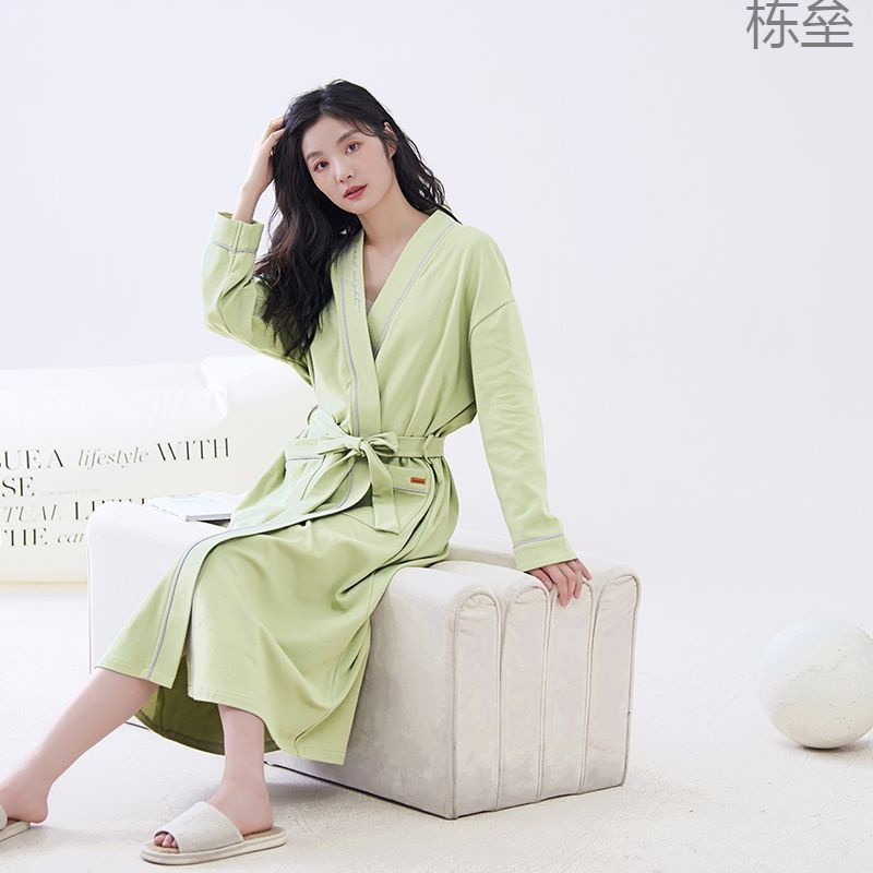 純綿の女性のパジャマ春、秋、冬ハイエンド無地インターネットセレブ韓国スタイルのセクシーな純粋な欲望のパジャマバスローブホーム服