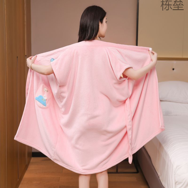 入浴後はそのまま着られる夏用大人用コーラルベルベットバスローブ、女性用バスタオル、吸水速乾、着て巻けるタイプ