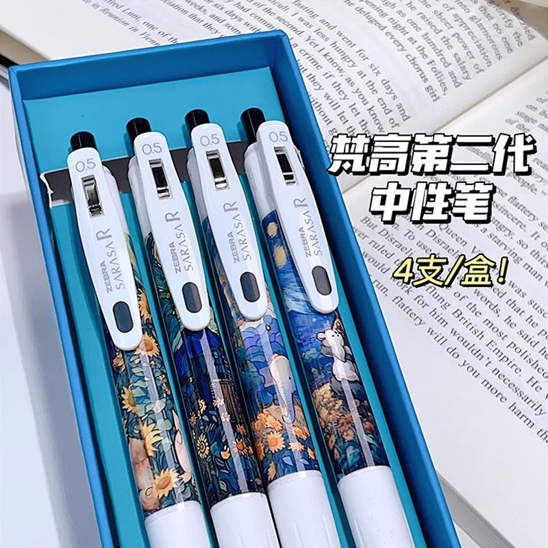 日本ゼブラシマウマペンJJ29ゴッホ限定DIY中性ペン0.5黒ひまわり絵画押しペン