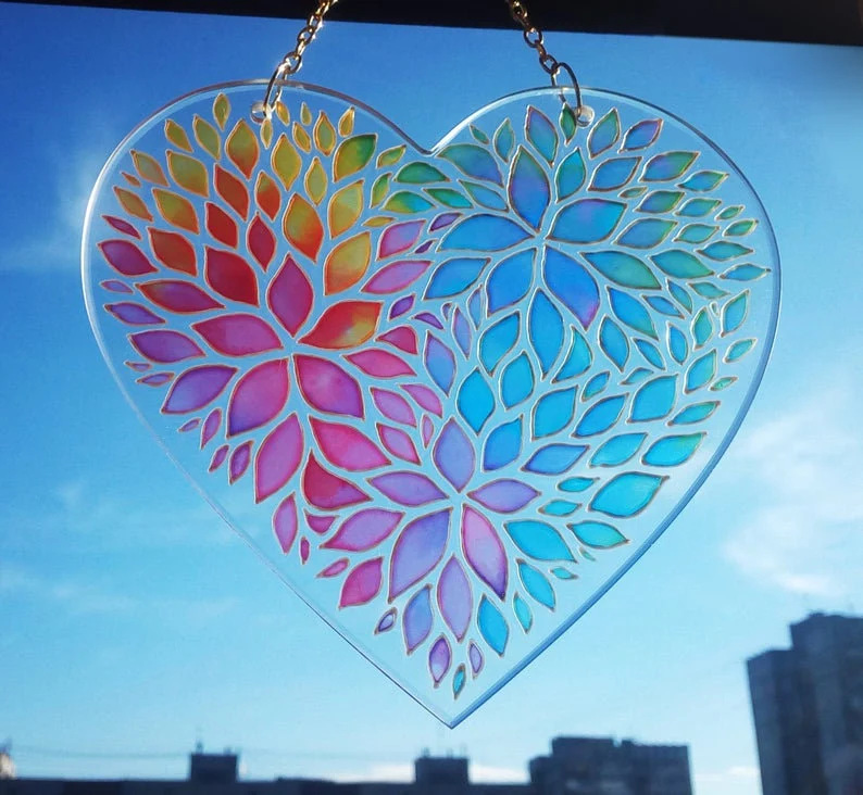 国境を越えた新製品虹心サンバイザーアクリルカラー心窓ガラス装飾
