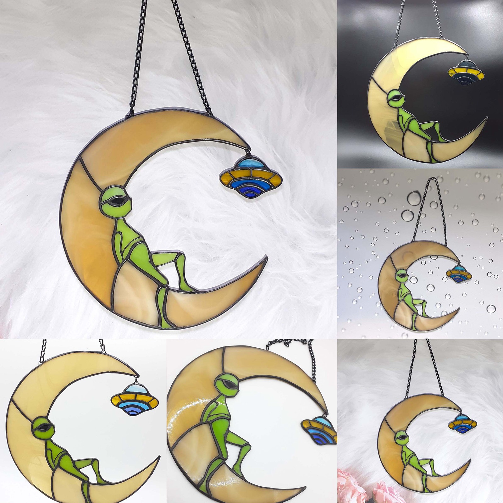 クロスボーダー新品ufoムーン宇宙人ストラップアクリルガラス窓飾り庭飾りストラップ