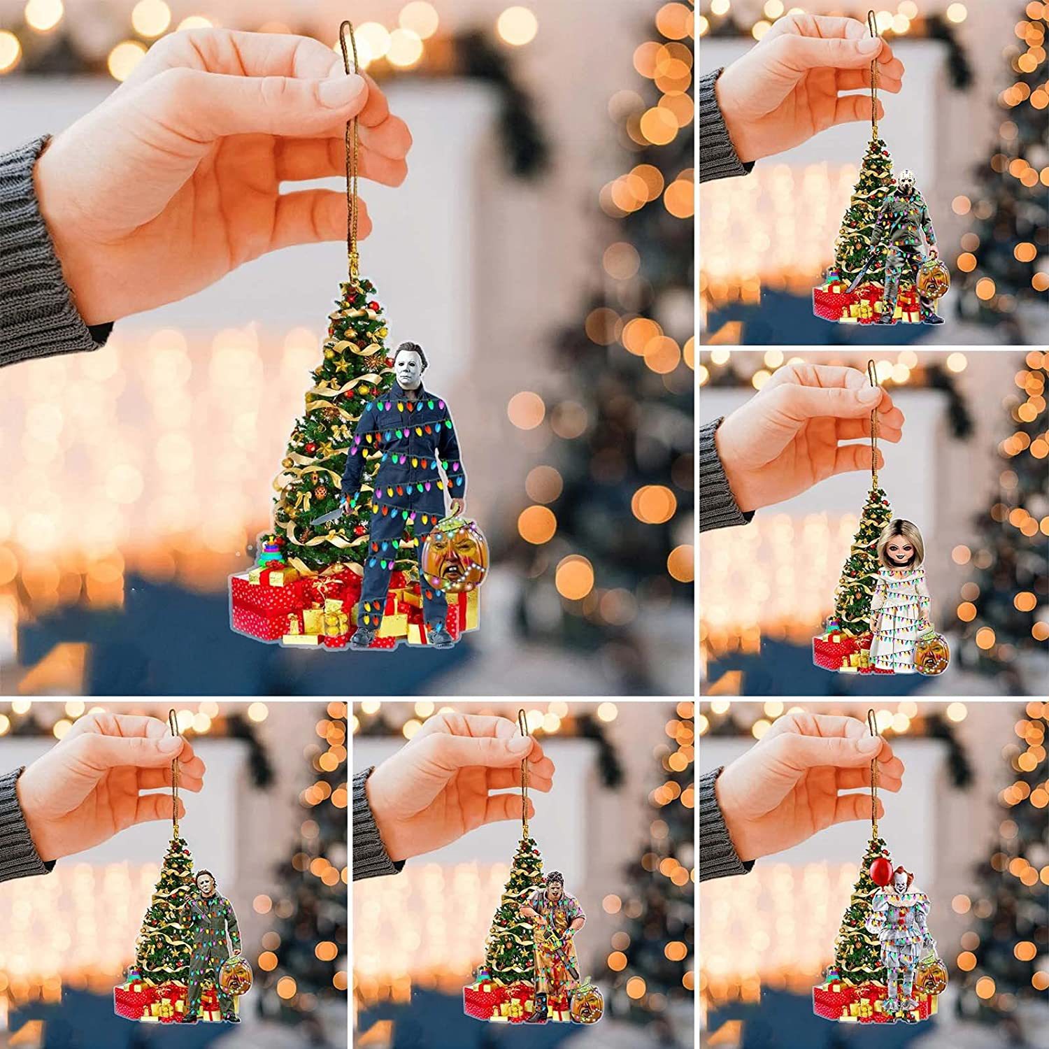 Ornament christmasホラー映画テーマペンダントクリスマスツリー装飾自動車バックミラー装飾