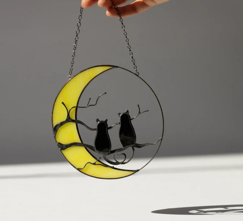 Halloween decor月の上の猫カボチャカラーアクリル装飾ハロウィーン窓ストラップ