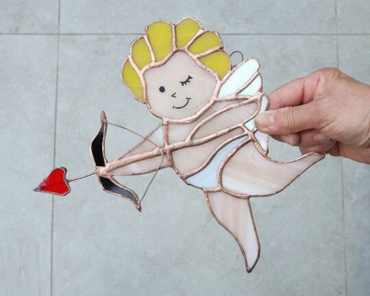 クロスボーダー新品ステンドグラス金髪キューピッドアクセサリー愛神キューピッドの心ホームガラスペンダント