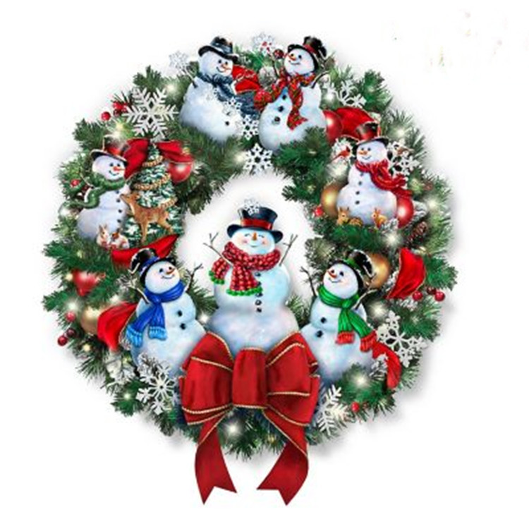 サンタクロースの花輪を飾って祝日にサンタクロースの雪だるまを飾ります。