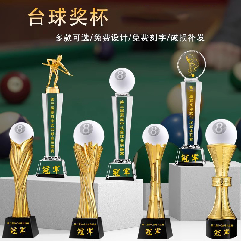 黒八ビリヤードテーブルボール水晶トロフィー制作樹脂金属小金人創意スヌーカー試合受賞記念