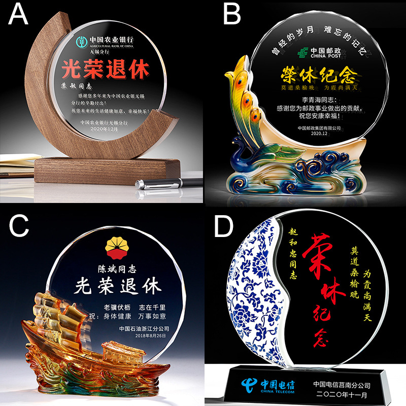 創意水晶トロフィー感謝牌光栄退職牌栄誉記念品先生教師節栄休プレゼントメダル
