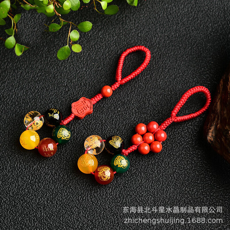 天然瑪瑙五路の財神のキーは赤い縄の朱砂の福の字の札の7星の陣の携帯電話のチェーンの男女の神の金のペンダントを掛けます。