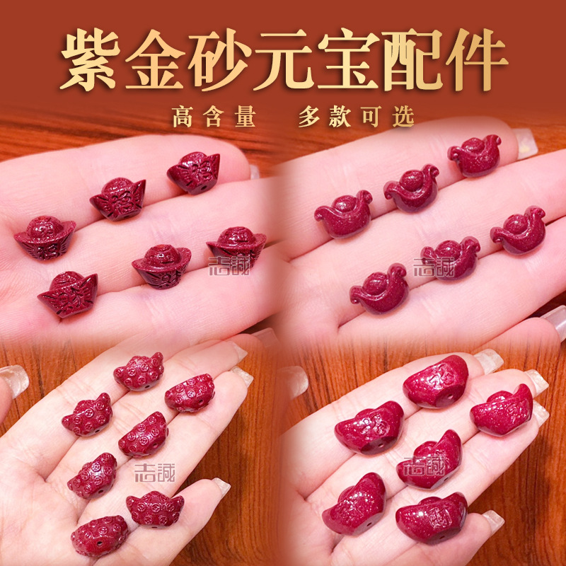 高含有量天然原鉱紫金砂福財紅朱砂直孔元宝部品辰砂ブレスレット散珠