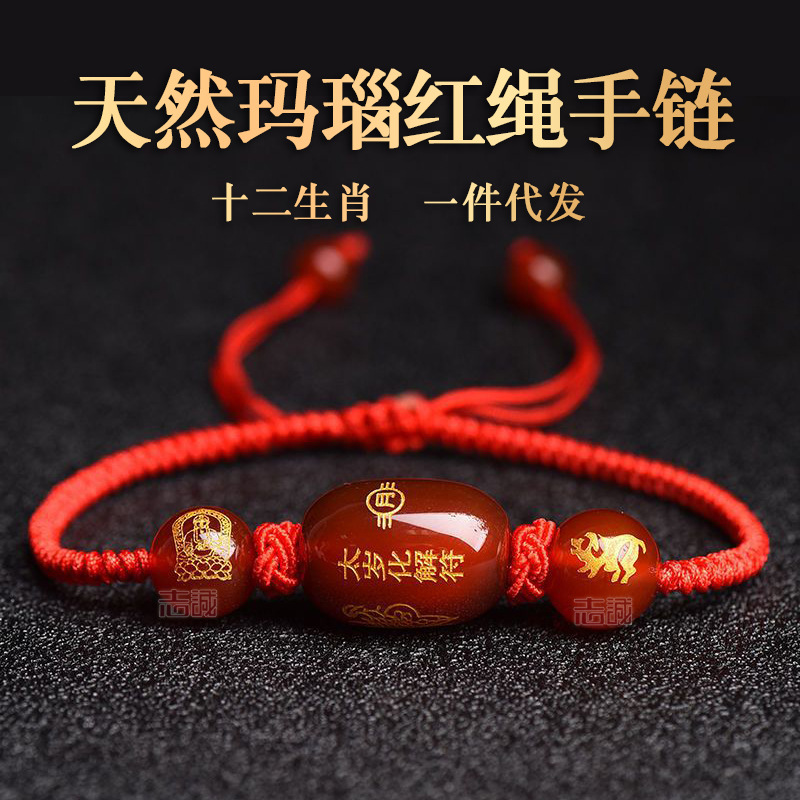 2024天然紅瑪瑙太sui桶珠蛇結生肖守護神紅縄ブレスレット女史金玉線手縄