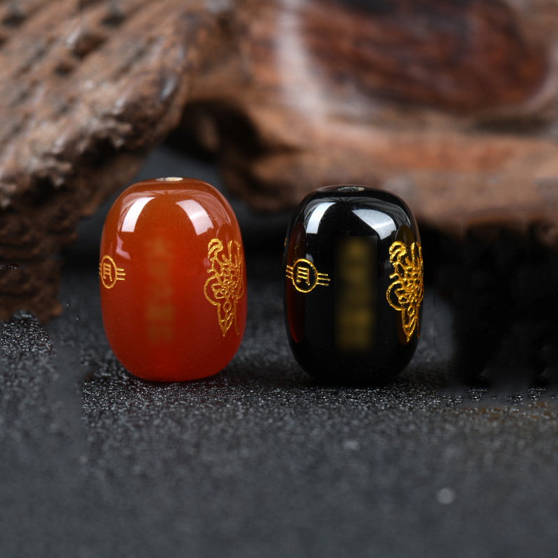 天然黒赤瑪瑙太水桶珠玉髓散珠アクセサリーブレスレットDIY用ビーズ卸売
