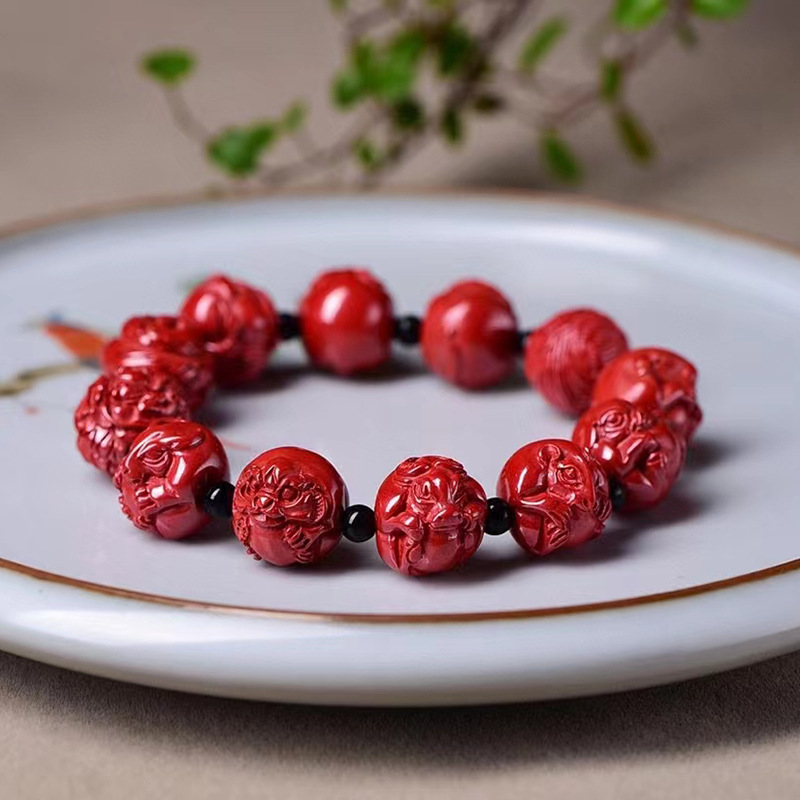 天然高含有量帝王砂十二生肖相ブレスレット男性金天然紅朱砂手串辰砂14mm