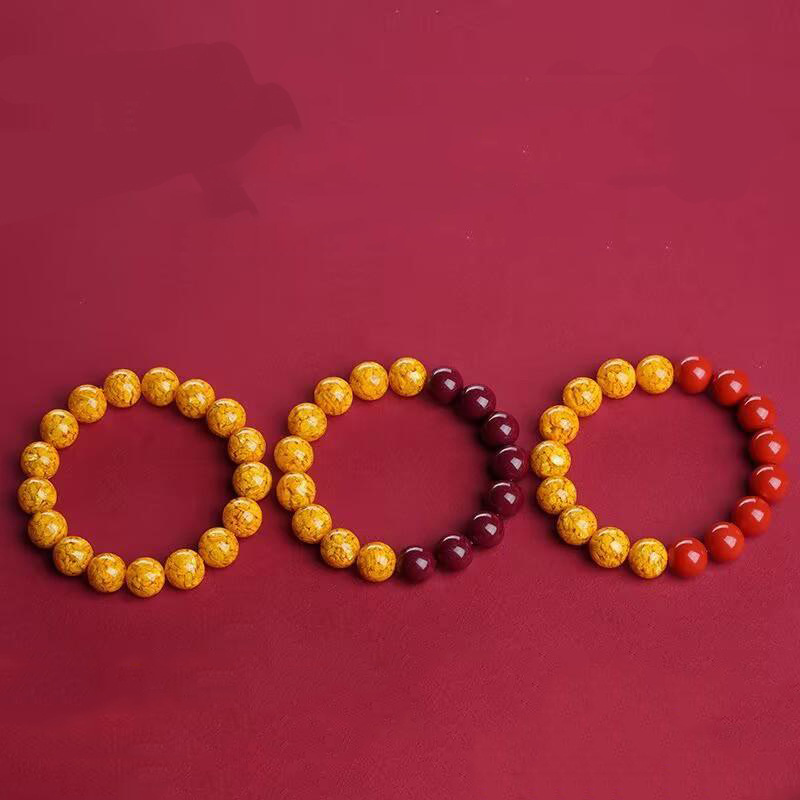高含有量雄黄砂顆粒黄色朱砂純銀サンスクリット生肖守護神男女金ブレスレット本命仏串
