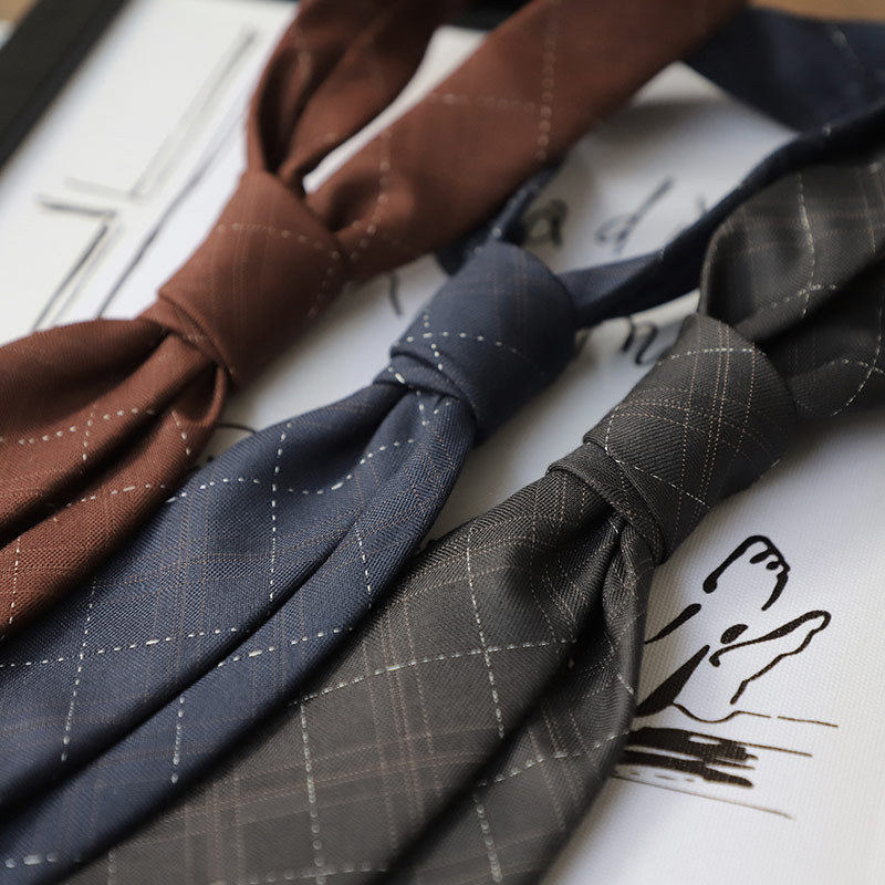 工場現物卸売り復古韓国版職業正装ファスナーネクタイ男格子縞墨緑酒赤コーヒー
