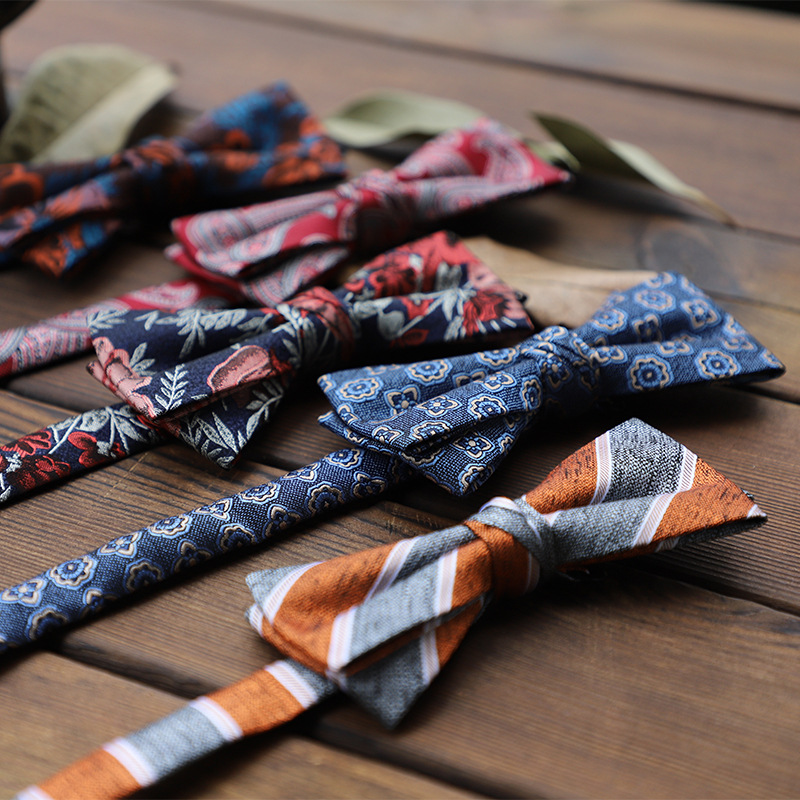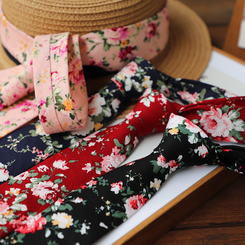 工場の現物卸売りレトロな花のカジュアルな韓国版の狭いタイプの6cmのフランスのネクタイの男性の綿のプリントの男女