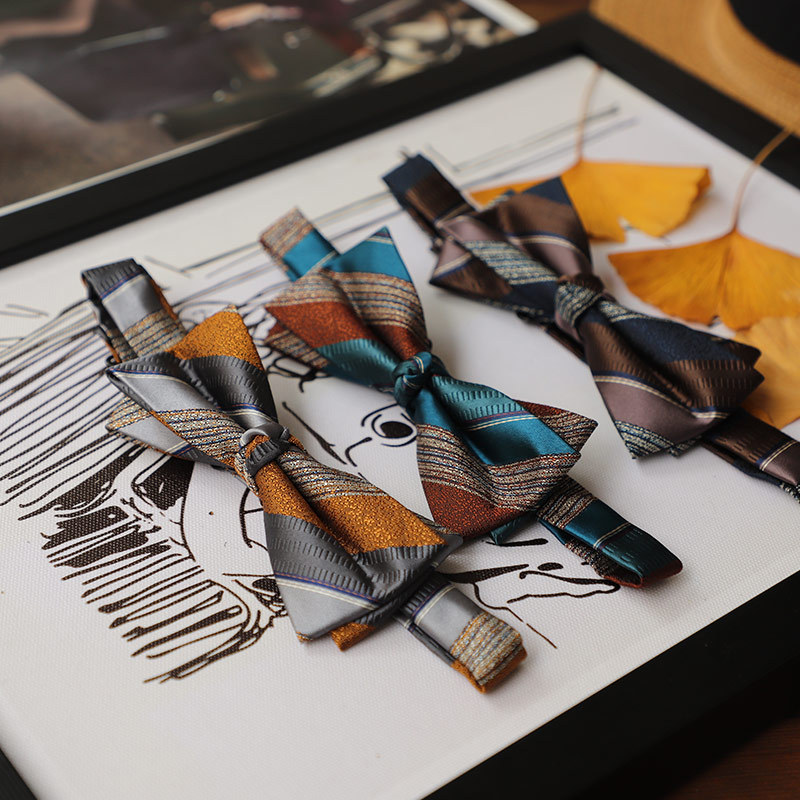 工場現物卸売り復古軽贅沢低調系縞蝶ネクタイ青黄シリーズ高級手作り蝶ネクタイ