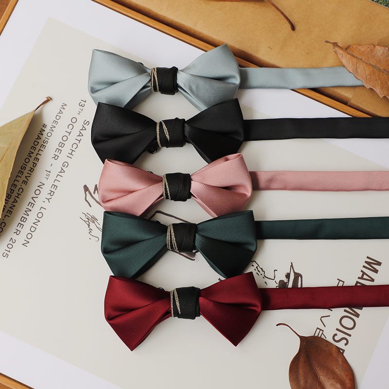 大手メーカーのレトロな浅珠光包芯蝶ネクタイ男黒ピンク酒紅韓国版純色蝶ネクタイシルクサテン
