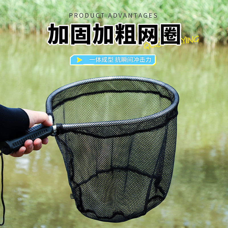 ショートハンドルルアーディンギングネット、ポータブルストリーム海釣りボート、釣りいかだ釣りネットバッグ、大型物防フックハンドディンギングネット
