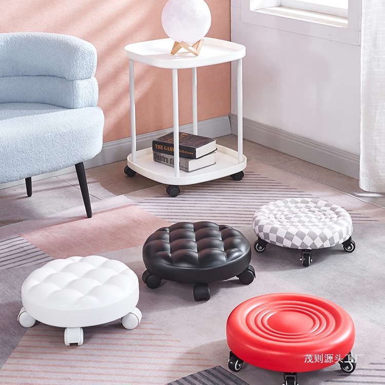 美しい継ぎ目スツール、家庭用車輪付き小さなスツール、サイレントプーリースツール、ロースツール、ラウンドスツール、モバイルユニバーサル交換靴スツール、リビングルームスツール