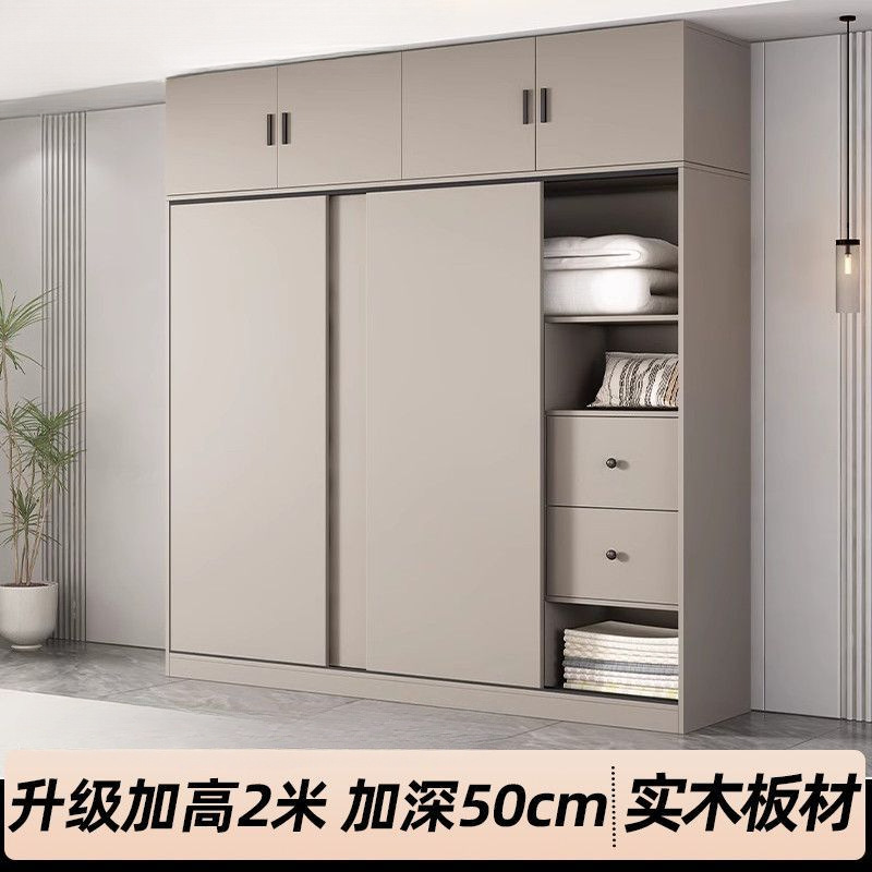 家庭用寝室用全無垢材引き戸ワードローブ、頑丈で耐久性のあるレンタル、シンプルな小さなアパートの引き戸キャビネット