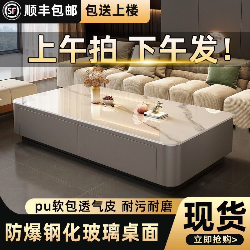 2024 新コーヒーテーブルリビングルームホームフロア小型アパートモダンライト高級ティーテーブル岩板テレビキャビネット組み合わせ