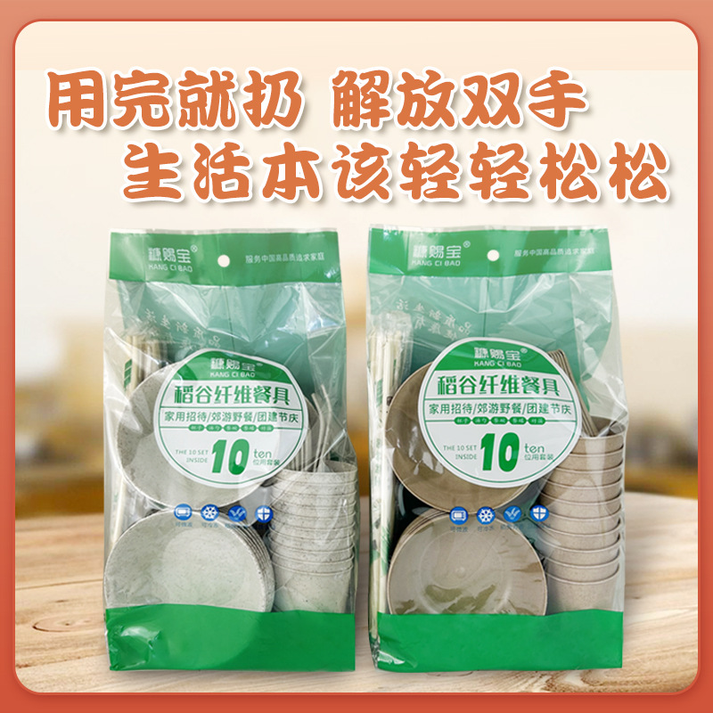 (2個買うと10人分無料) 米ぬか使い捨て食器・食器 10点セット 家庭用ピクニック・アウトドア・キャンプ用