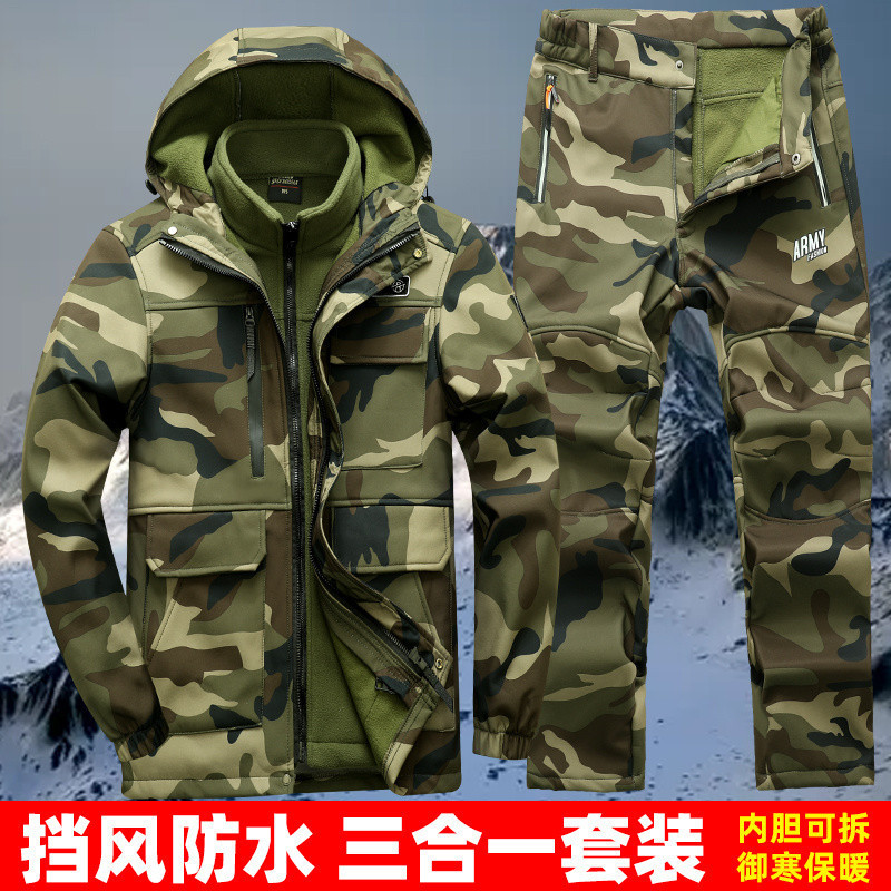 Q3Y 秋冬迷彩ジャケットスーツメンズベルベット厚みのある防水防寒暖かい耐摩耗性作業服綿服