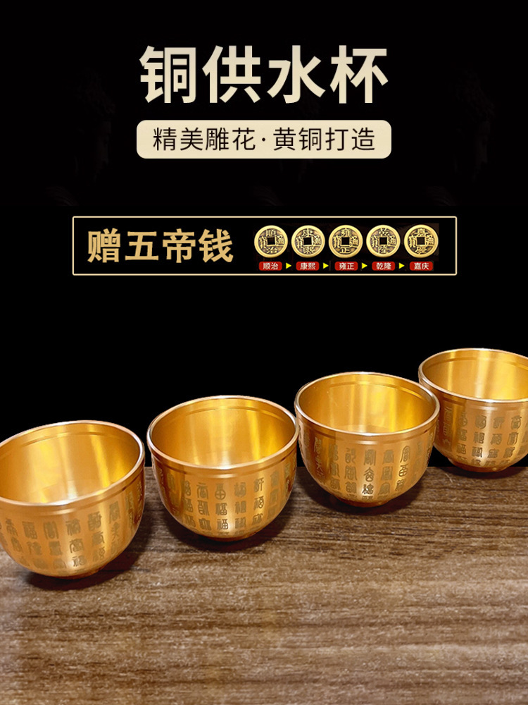 純銅給水杯家庭用仙家財神真鍮杯仏杯給水杯仏堂仏前菩薩供杯トランペット