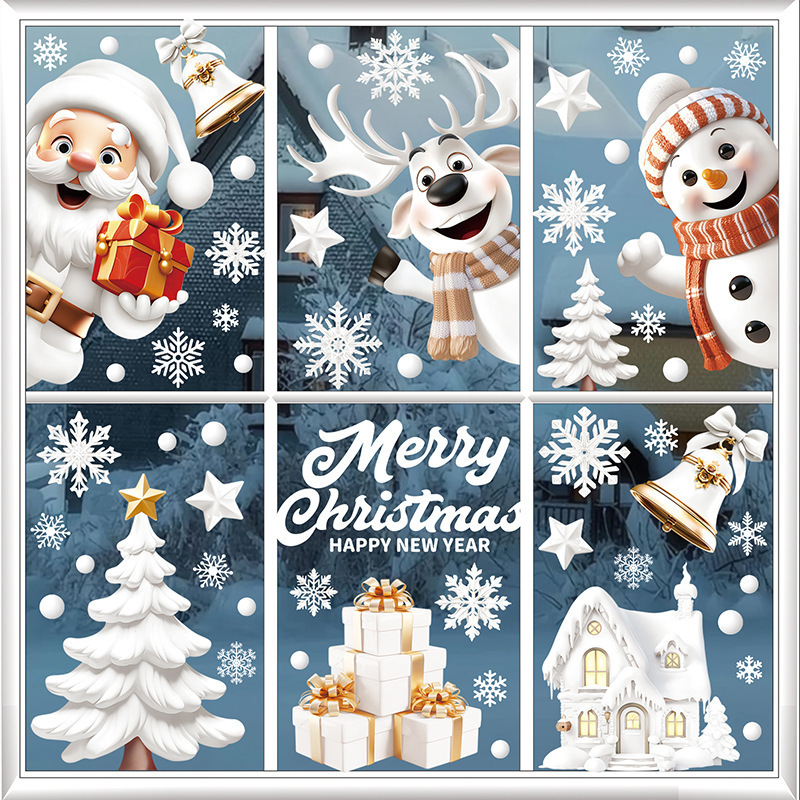 クリスマス装飾窓はショーウインドーの背景に飾られています。
