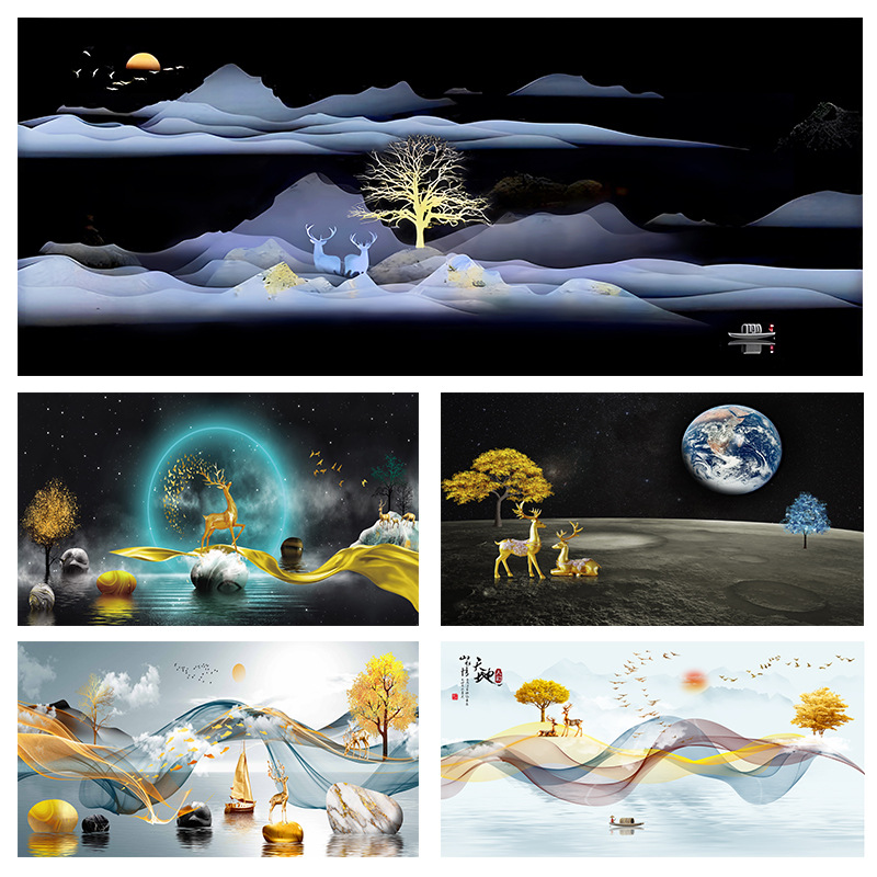 金魚鉢の背景のステッカーは鹿の高い山水画の立体の高清図の3d壁紙を招きます。