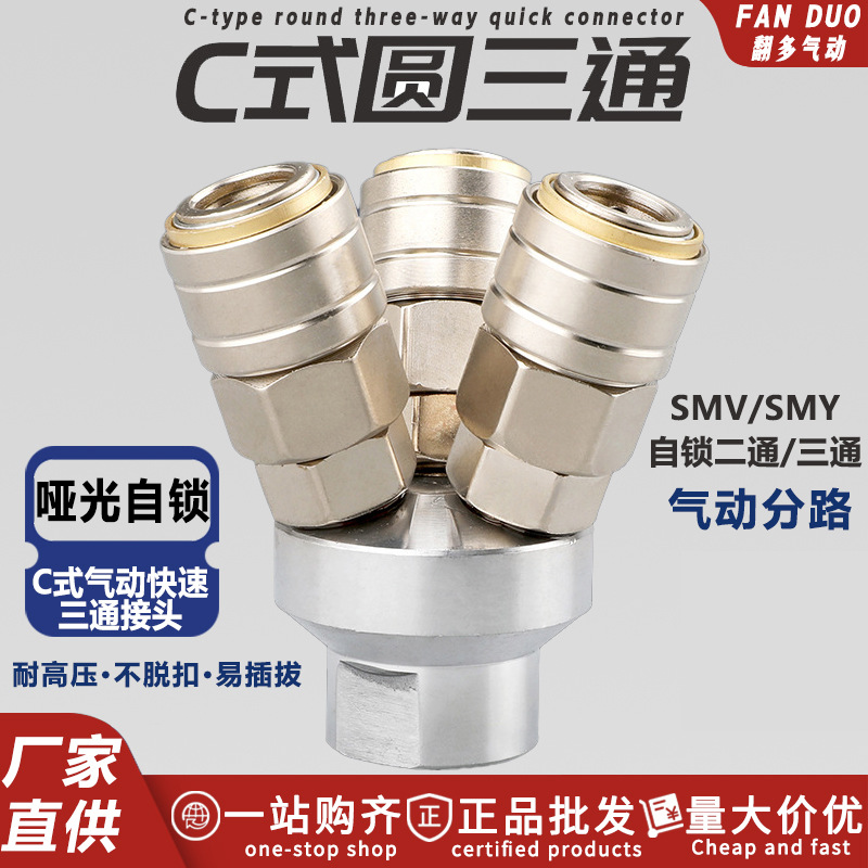 気管三方c式クイックジョイントSMVエアポンプ出口セルフロック丸三方継手部品SMY三叉ヘッド